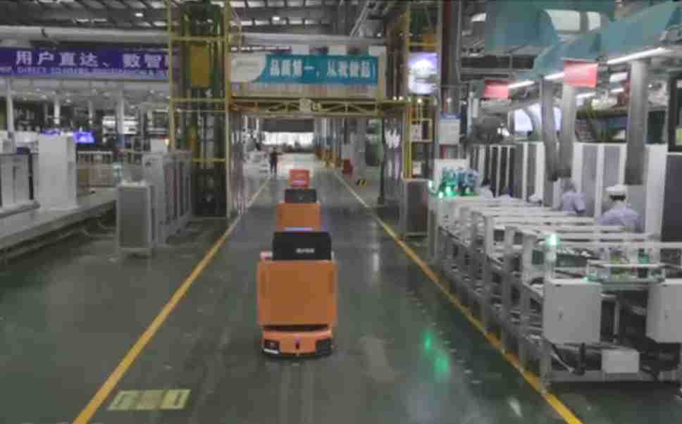 为车载冰箱物流配送打造的智能解决方案,,包含产中物流通过潜伏举升AMR搬运至线边,,,产后成品物流智能仓储,,流程包含产中物流智能齐套入库,,,线边安灯叫料AMR智能配送至线边,,,成品入库、、、、出库,,,通过无人堆高车机器人,,,智能仓储管理替代人工作业管理,,实现更高存储、、更高效率、、、更具柔性化的解决方案。。