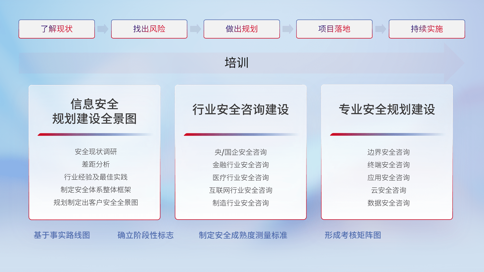 梳理客户信息安全现状调研、、差距分析结果,,,结合行业先进经验及最佳实践,,制订客户的信息安全管控体系总结架构,,,,最终形成一个完整的客户信息安全规划与建设的全景图。。